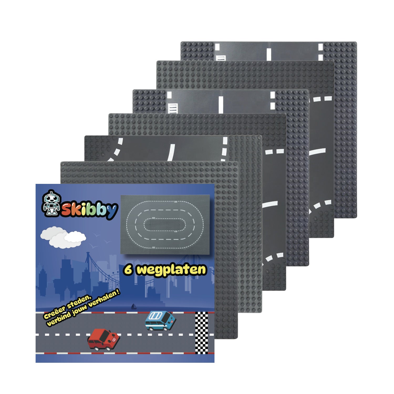Skibby wegplaten set geschikt voor LEGO - city stenen 32 x 32 noppen - bouwplaten set - wegplaat - weg - classic bouwstenen - plaat groot - grondplaat - city wegplaten 60304 - 6 stuks